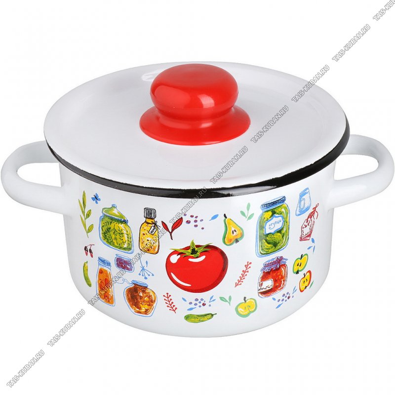 Маринад Кастрюля белый (цил) 2,9л мет.крышк,красн.пласт.ручка/кноп