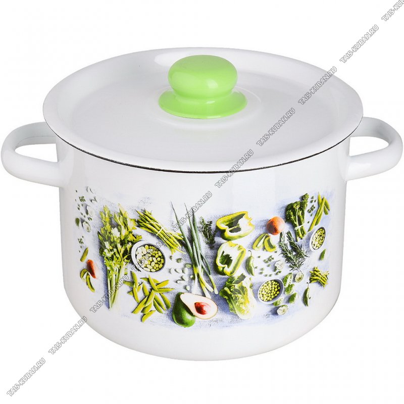 Свежая зелень Кастрюля белый (цил) 4,5л мет.крышк,зелен.пласт.ручка/кноп