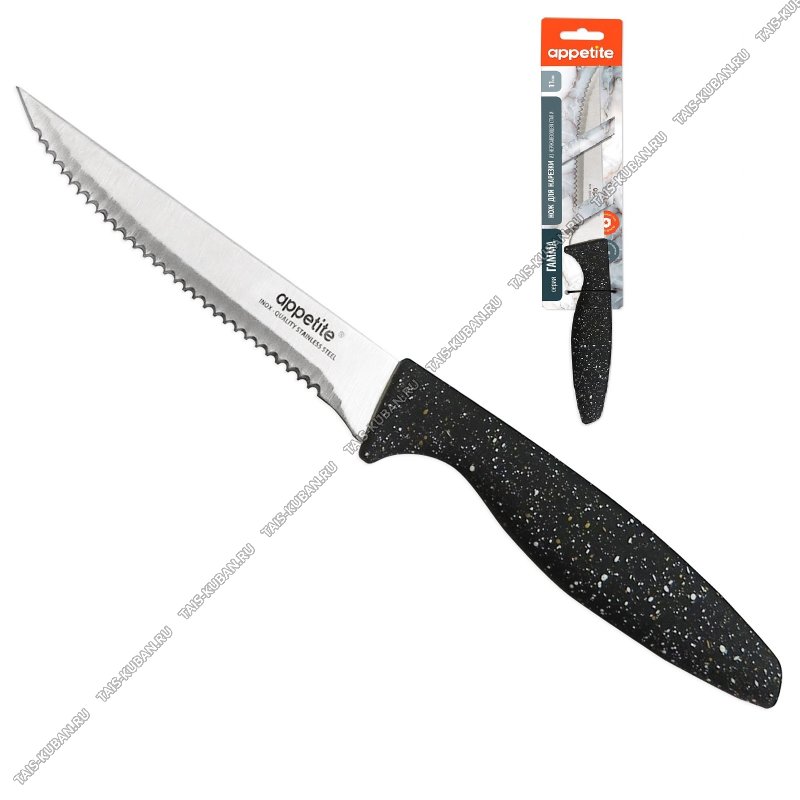 лезвие нержавеющая сталь 2Cr13,толщина 2,0мм,прорезиненная ручка черный "гранит",блистер,Appetite