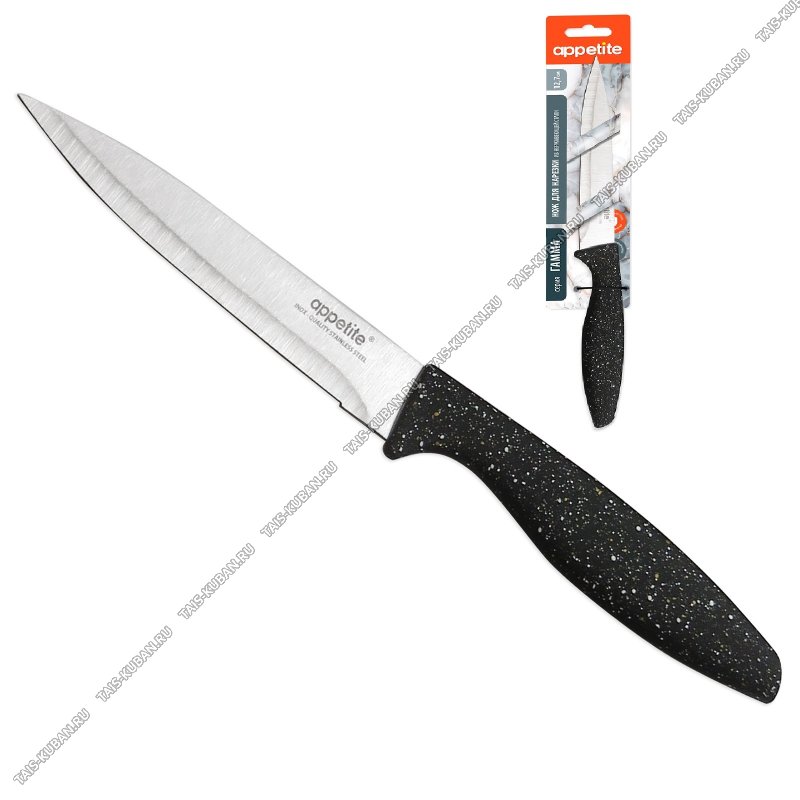 лезвие нержавеющая сталь 2Cr13,толщина 2,0мм,прорезиненная ручка черный "гранит",блистер,Appetite