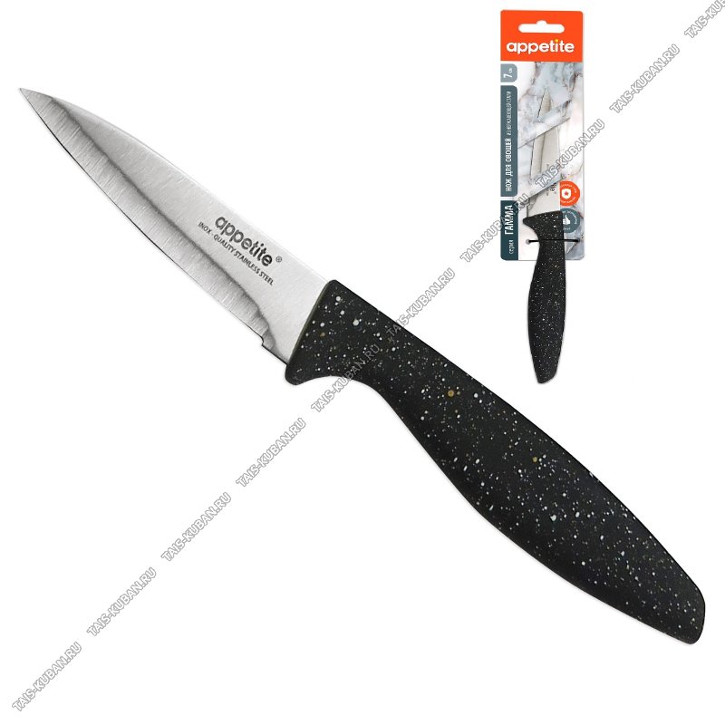 лезвие нержавеющая сталь 2Cr13,толщина 2,0мм,прорезиненная ручка черный "гранит",блистер,Appetite