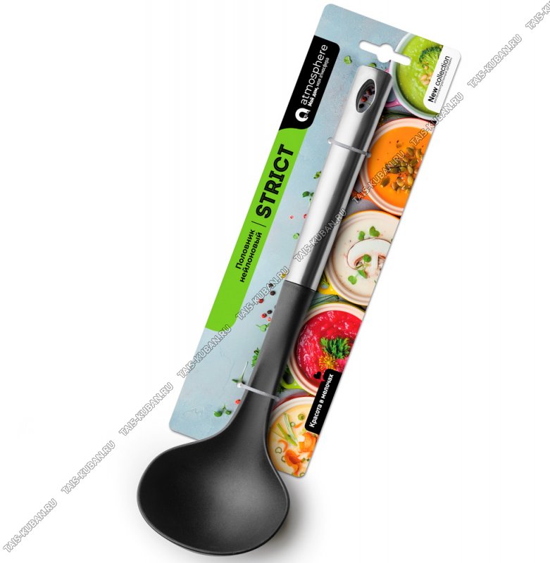 Strict Половник (нержвеющая сталь+нейлон) L33 d10см,отверстие д/подвешивания,черно/серебристый (12)