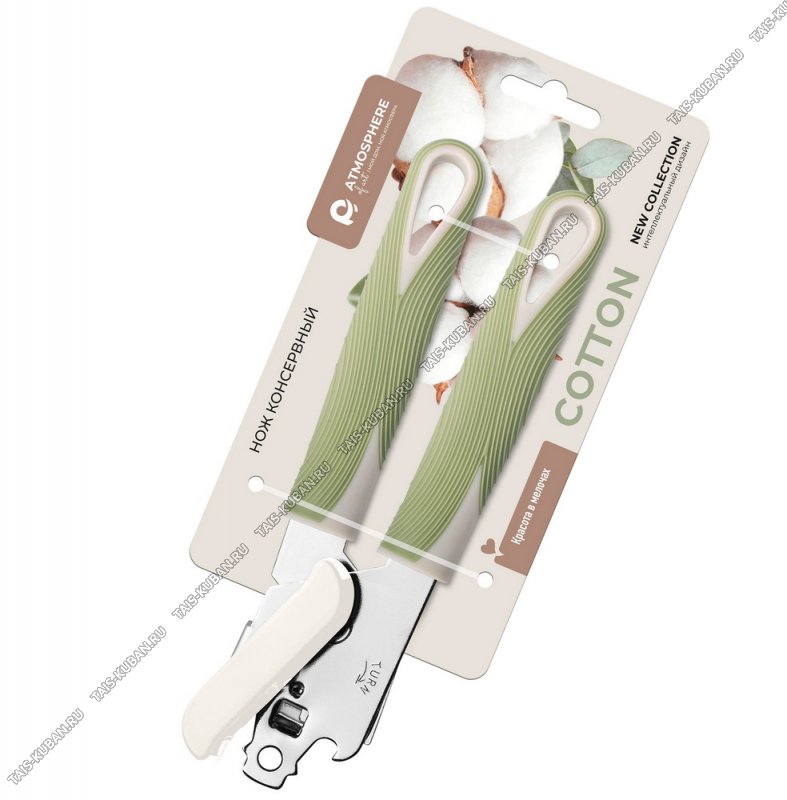 Cotton Нож консервный (хром+нерж+пластик) L21,5см,оливковый (6)
