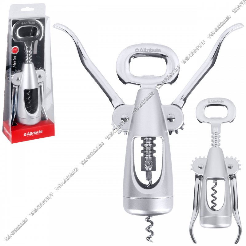 Штопор L23см +открывалка д/бутылок,хромир сталь+пластик,серебро