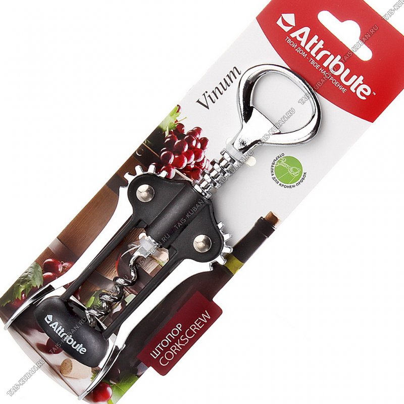 Штопор L15см +открывал.д/бутылок,хромир сталь Штопор L15см +открывал.д/бутылок,хромир сталь