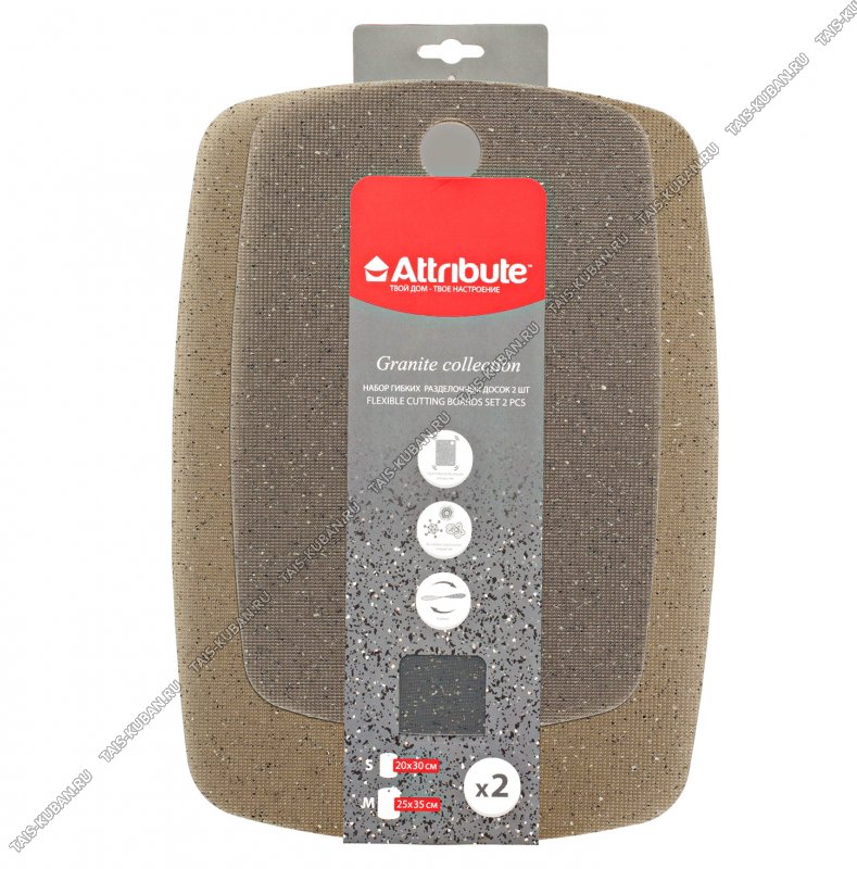 "Granite" Доска раздел (пластик) н-р 2шт "гибкие" (30х20/35х25см) подвес, коричн/серый (30)
