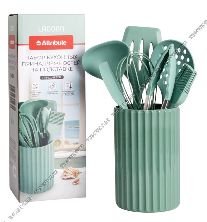 кисть кулинарная силикон L26х4см/венчик для взбивания силикон+нержаваеющая сталь L27см/лопатка кулинарная L26,5см/щипцы силикон+нержавеющая сталь L27см/шумовка силикон L17,5см/половник силикон L19,5см/лопатка с прорезями силикон L30cм),подарочная упаковка,Attribute
