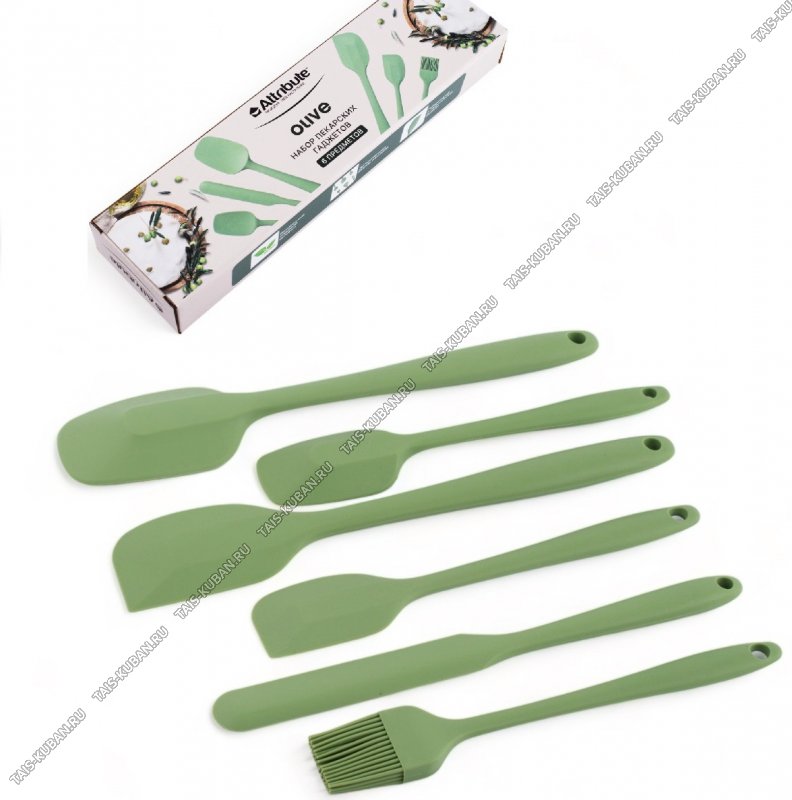 кисточка L20,5х3см,лопатка 2шт L21,5х4/27х5cм,ложка 2шт L20,5х4,5/27х5,5см,шпатель кондитерский L24,5х2,5см ) литые,цвет оливковковый,подарочная упаковка,Attribute