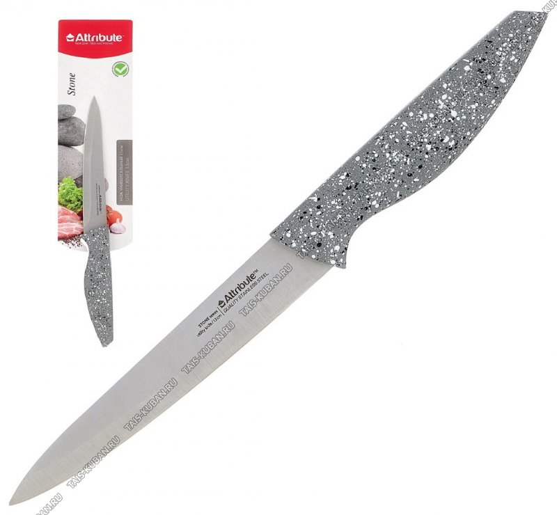 STONE Нож универс. 13см, нерж.лезв,ручка пласт.Soft-touch,цв.серый п/мрам. (12)