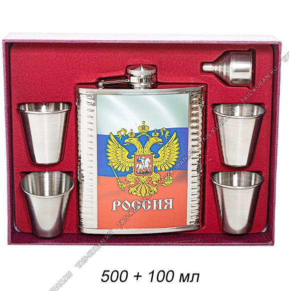 Фляжка 500мл, 4стопки 100мл и воронка, подарочная упаковка