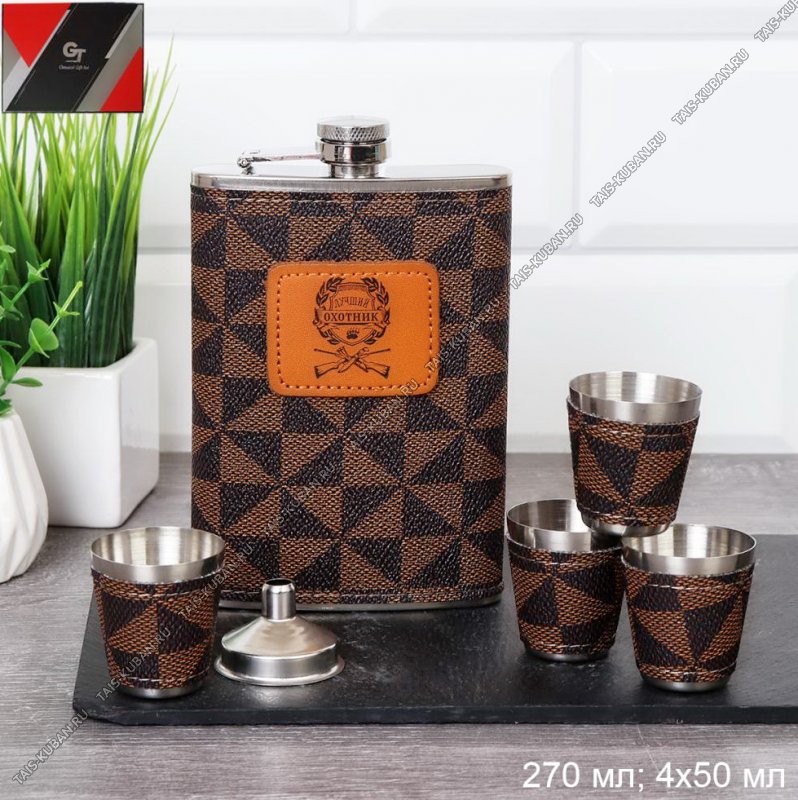 Фляжка 270мл, 4стопки 50мл и воронка, подарочная упаковка