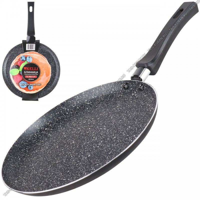 Блинница черный с "мраморнной белой крошкой" d25см, индукционное дно,бакелитовая ручка (10)