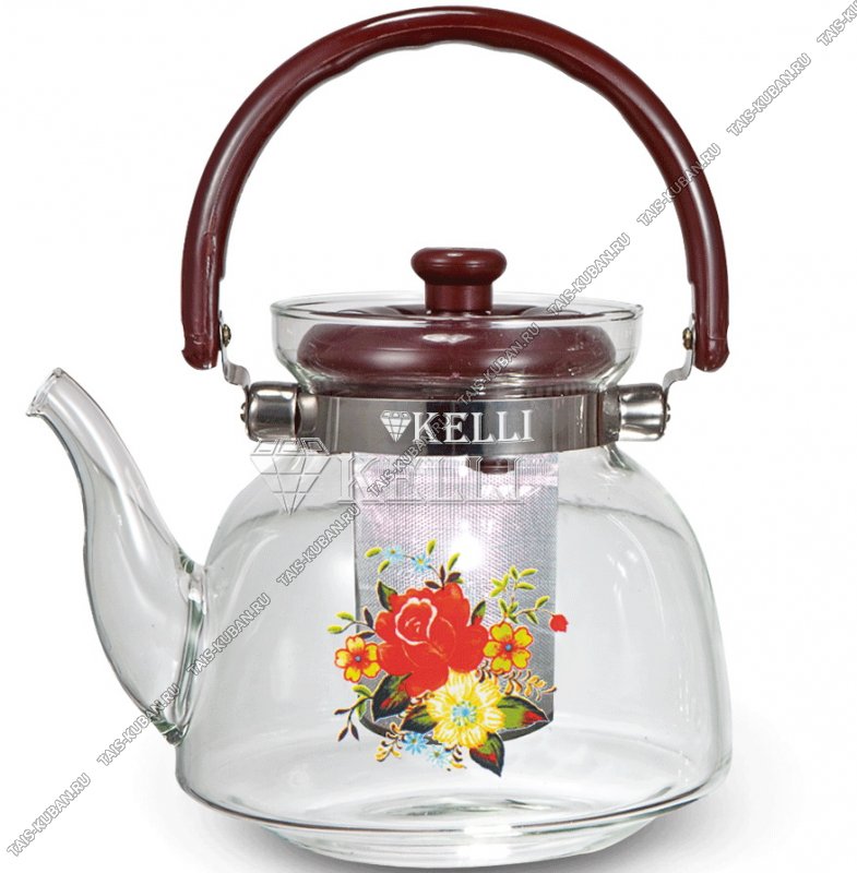 Чайник заварочный (стекло) 1,4л "Цветы" (12)