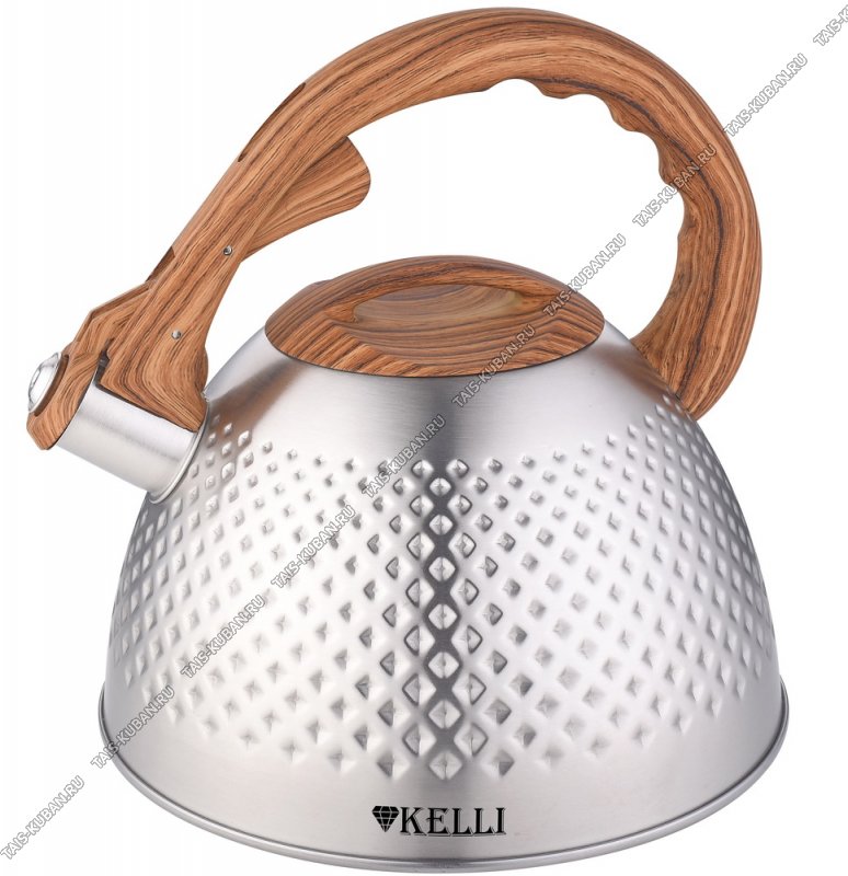 Чайник нерж 3,0л свист,индукц.капс.дно,рельефн.корпус "ромбы",ручка бакел."дерево/soft-touch" с кнопк.д/открыван,матов, п/у (12)