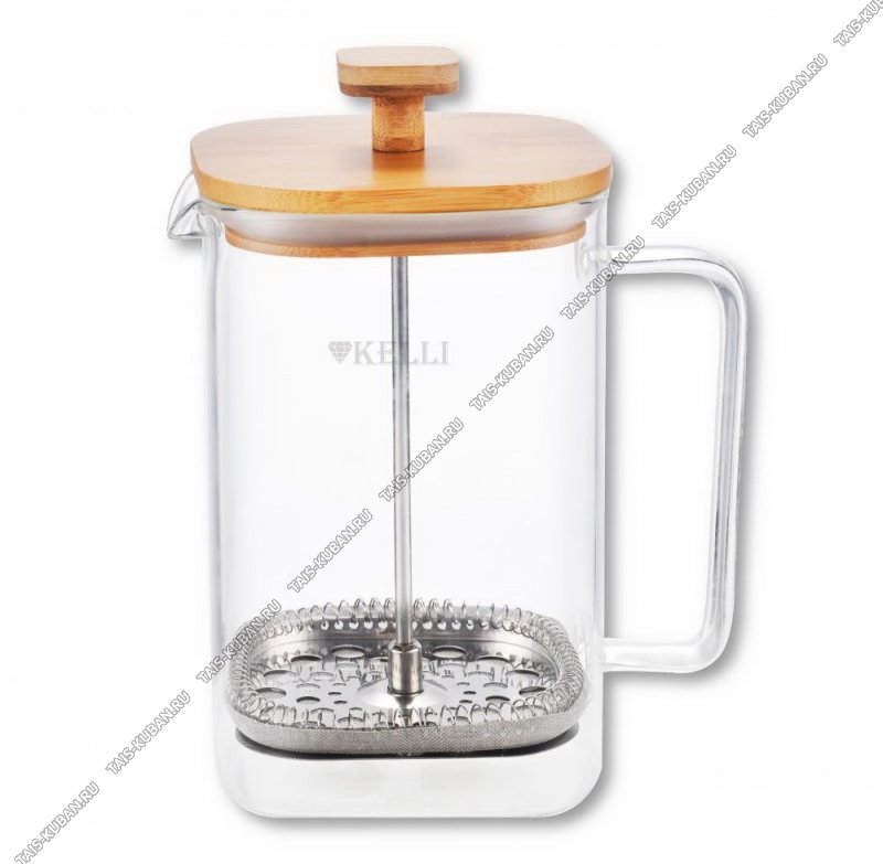 Френч-пресс (стекло) "Bamboo" 1,0л ф.квадр,нерж.поршень,крышка бамбук,п/у (12)