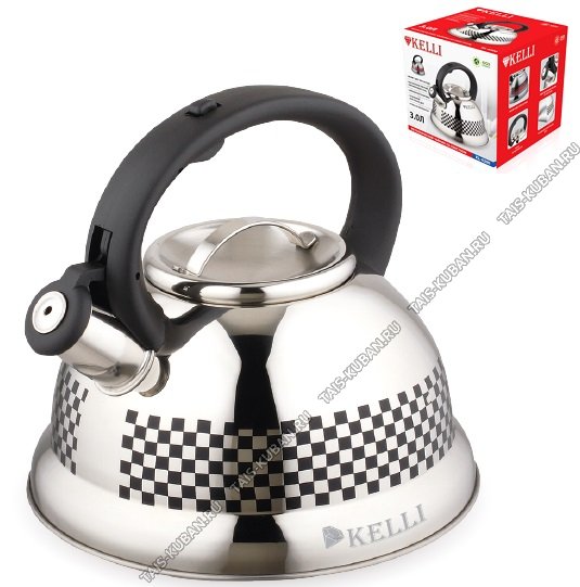 Чайник нерж ТЕРМО 3,0л "Шахматы" свист,индукц.капсул.дно,узор меняет цвет при нагреве,ручка бакел.черн.с кнопк.д/открыван,зеркал.полир,п/у (12)