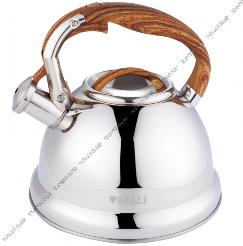 Чайник нерж 3,0л свист,индукц.капсул.дно,ручка металл/бакел."дерево/souft-touch",зеркал.полир,п/у (12)