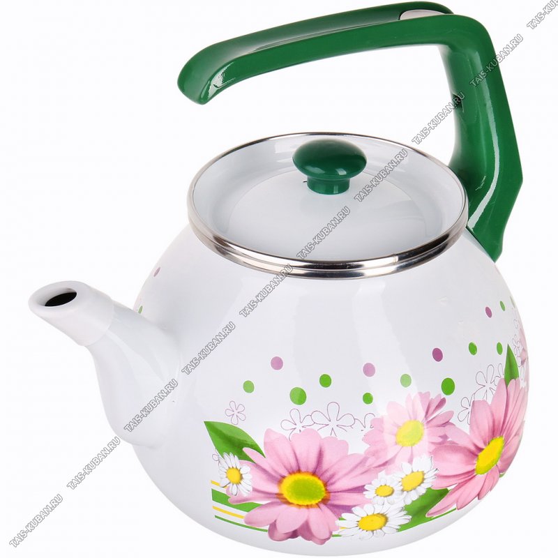 Чайник 3,0л "Розовые герберы" бел.эмаль,мет/кр,бел.бакел.руч (4)