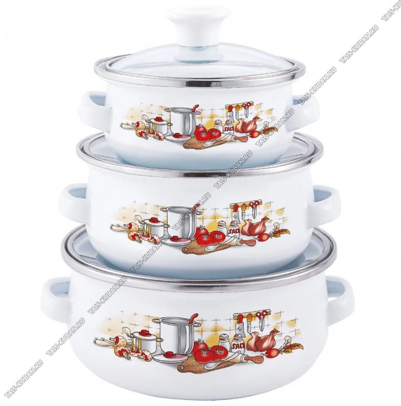 Набор мини-кастрюль 3шт Набор мини-кастрюль 3шт "Лимоны" бел. (0,5/0,7/1,1л;d12/14/16см) инд.дно,стекл.крыш,п/у (12)