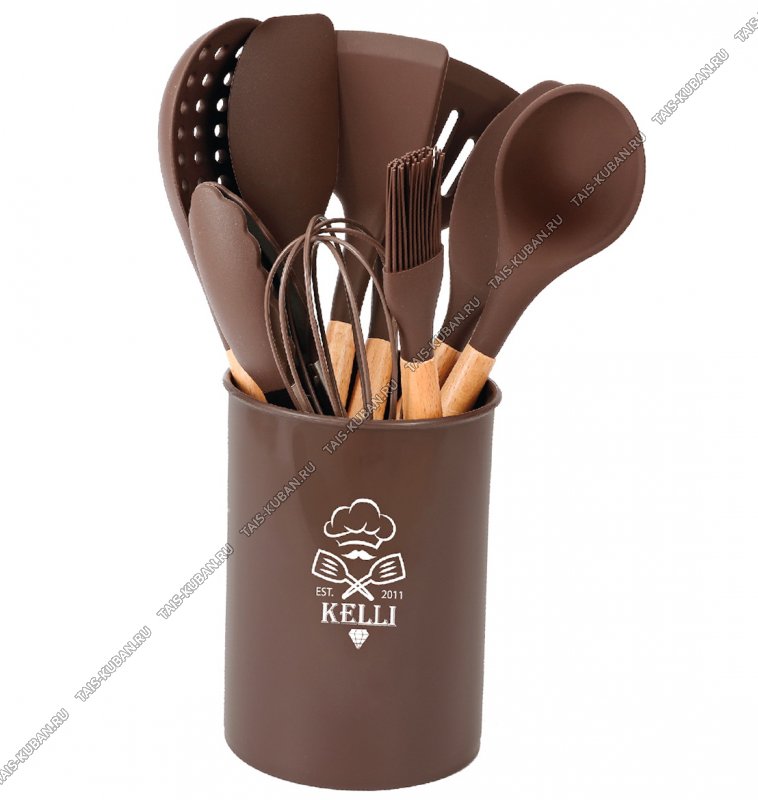 Кухонный н-р 12пр.в стакане d13 h15см,шоколадный Кухонный н-р 12пр.в стакане d13 h15см,шоколадный