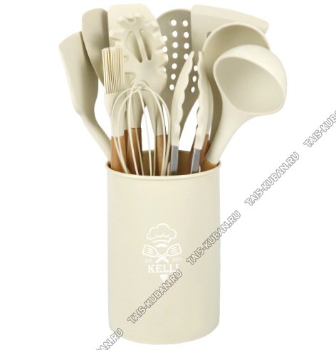 Кухонный н-р 12пр.в стакане d13 h15см,кремовый Кухонный н-р 12пр.в стакане d13 h15см,кремовый