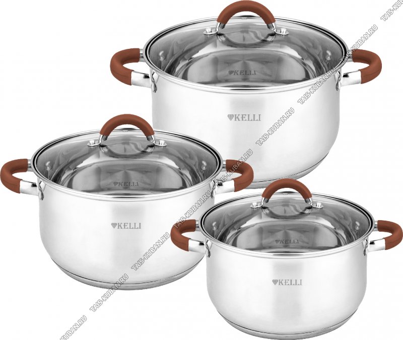 форма цилиндр,стеклянные крышки,индукционное дно,шкала литража,коричневые силиконовые ручки,зеркальная полировка,подарочная упаковка,Kelli