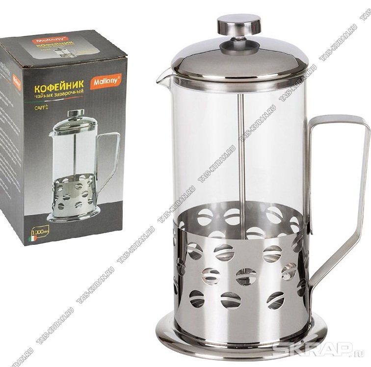 Френч-пресс (стекло+нерж) "Caffe" 1,0л (12)