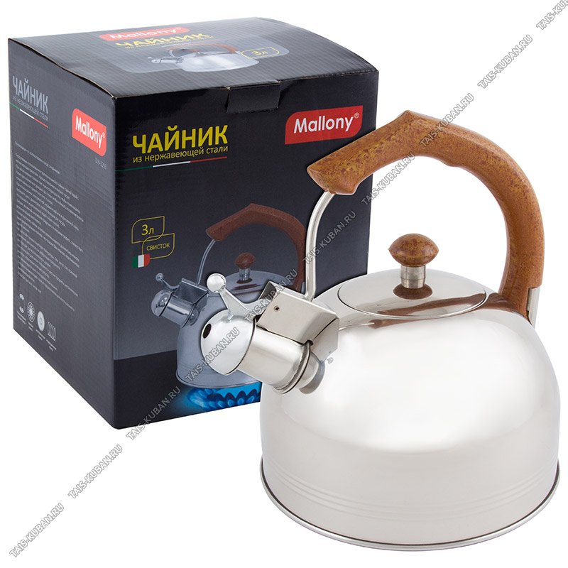 Чайник нерж 3,0л свист,индукц.капсулир.дно,ручка металл/пластик "дерево",зеркал.полир,п/у (12)