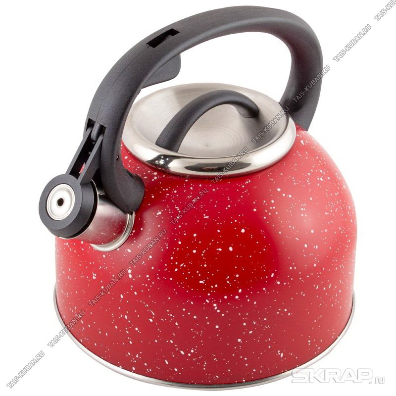 Чайник нерж 2,5л "гранит" красн,инд.дно,свист,ручк.бакелит.черн с кнопк.д/открыв,матов,п/у (12)
