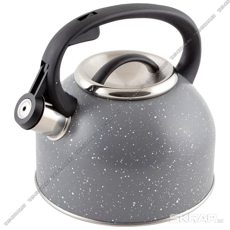 Чайник нерж 2,5л "гранит" серый,инд.дно,свист,ручк.бакелит.черн с кнопк.д/открыван,матов,п/у (12)