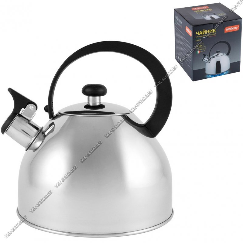 Чайник нерж 2,5л свист,одинарн.индукц.дно,ручка бакел.черн,зеркал.полиров,п/у (12)