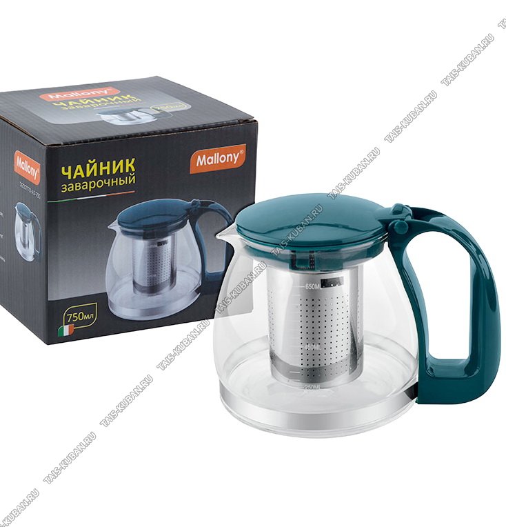 Чайник завар (стекло) "Decotto" 0,75л крышк/ручк.зелен.пласт,нерж.фильтр,п/у (12)