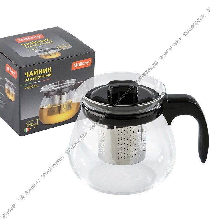 Чайник заварочный (стекло+пластик) "Persona" 0,75л,нержавеющий фильтр,черный,подарочная упаковка (12)