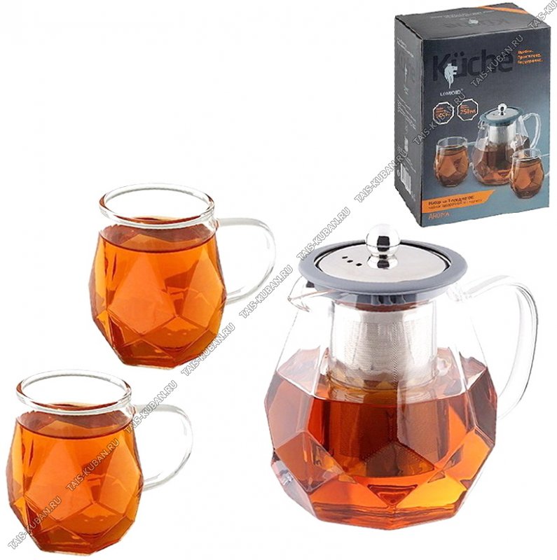 Чайник завар (стекло) "Aroma" 0,82л+2 кружки 250мл (8)