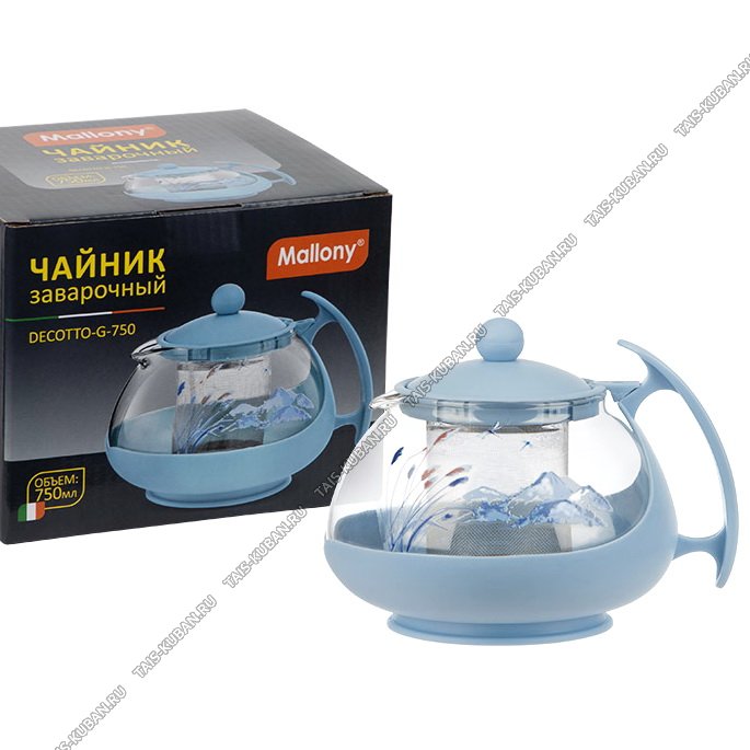 Чайник заварочный (стекло+пластик) "Decotto/Горные вершины" 0,75л,голубой (12)