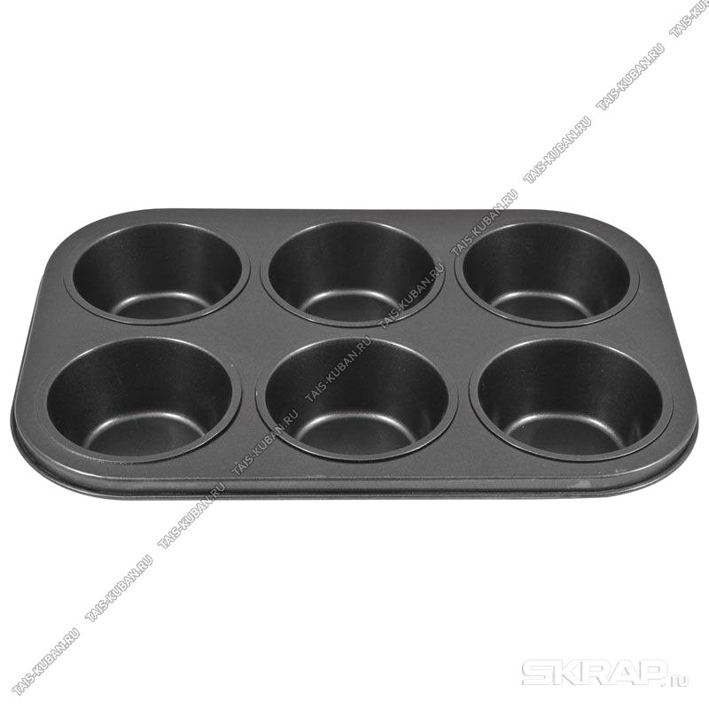 Форма д/кексов,маффинов 6 ячеек d5см (31х22 h4см) черн,углерод.сталь (24)