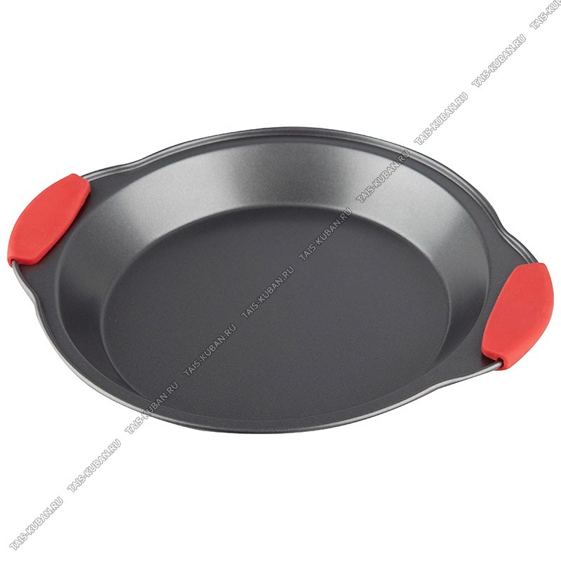 Форма д/пирога круглая d29 h3см,углеродистая сталь,толщина 0,4мм,серый,силиконовые вставки на ручках (24)