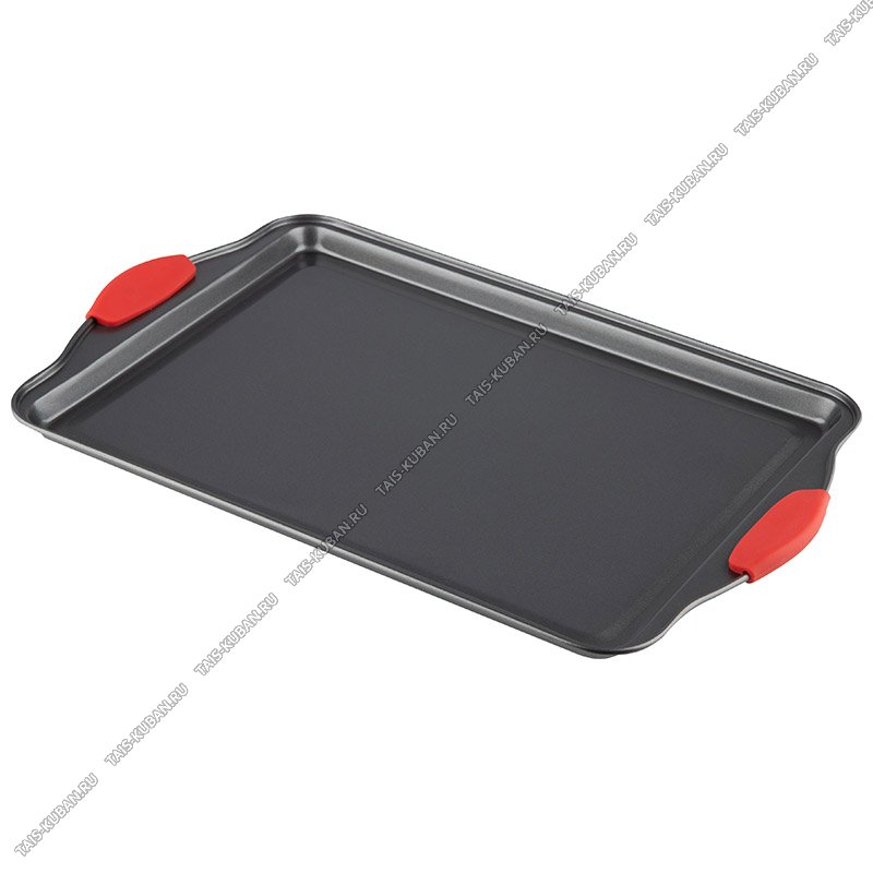 Противень низкий,прямоугольный 40х26 h2см,углеродистая сталь,толщина 0,4мм,серый,силиконовые вставки на ручках (24)