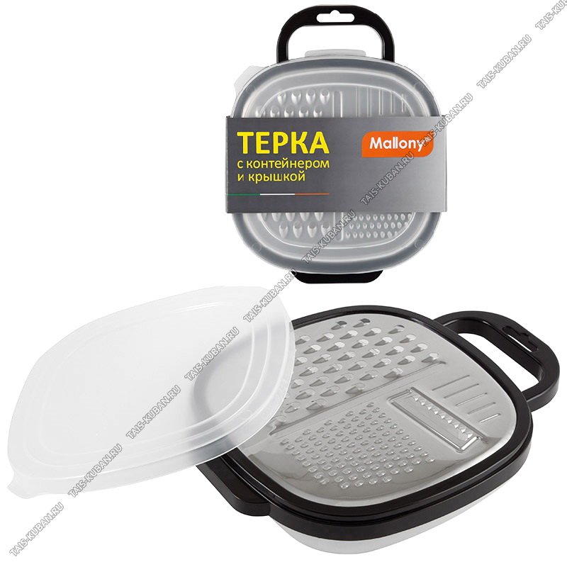 Терка с контейнером и крышкой 24х19 h6см,нержавеющая сталь+пластик,черный (20)
