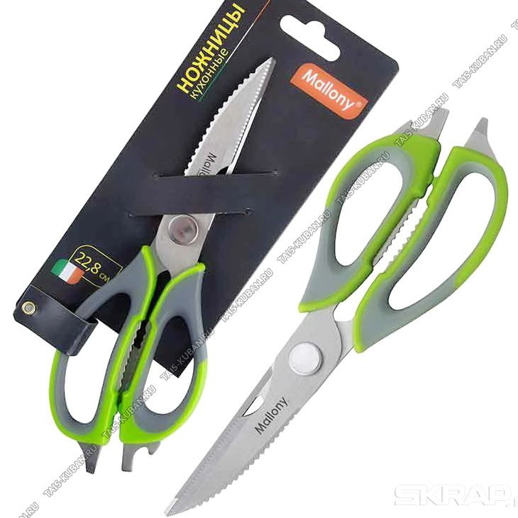 Ножницы кух.универс. 23см+чехол,лезв.сталь,2-х комп.сер/зелен.пласт.ручк. Ножницы кух.универс. 23см+чехол,лезв.сталь,2-х комп.сер/зелен.пласт.ручк.