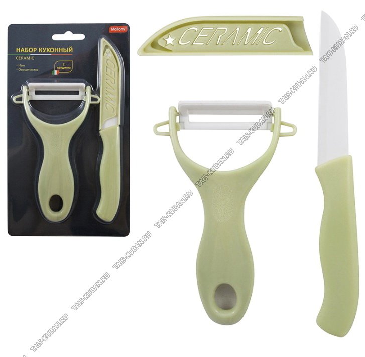 Набор 2 предмета (нож 16см толщина лезвия 1,1мм,овощечистка 13х8см) керамика+пластик (20)