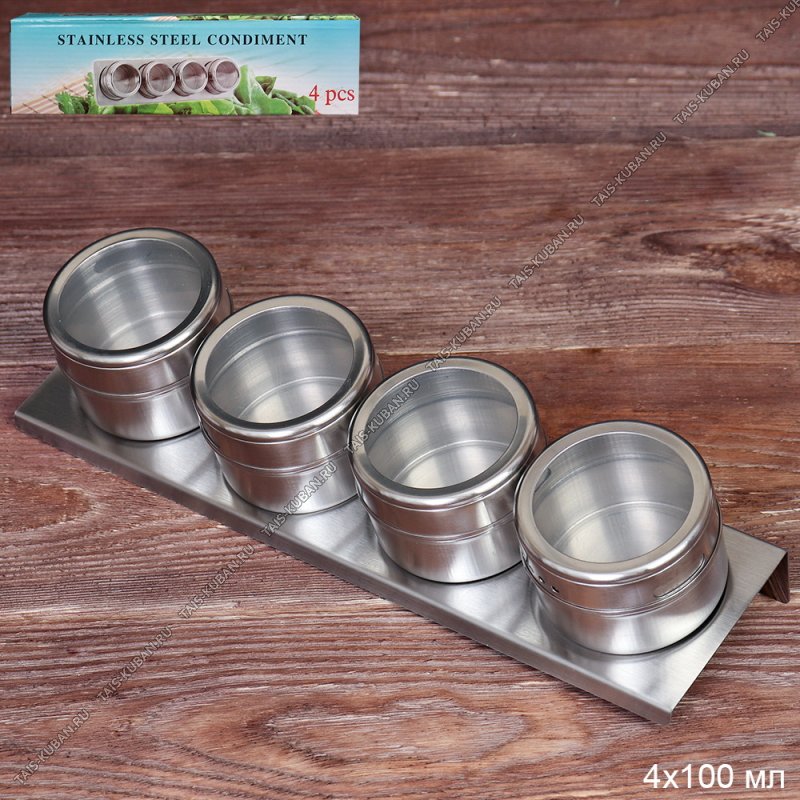 Н-р д/специй на магнит.подст 4пр по 100мл (стекло+нерж) п/у (50)