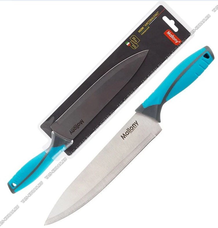 лезвие нержавеющая сталь (2CR14),прорезиненная ручка,цвет ручки голубой с серым,блистер,Mallony