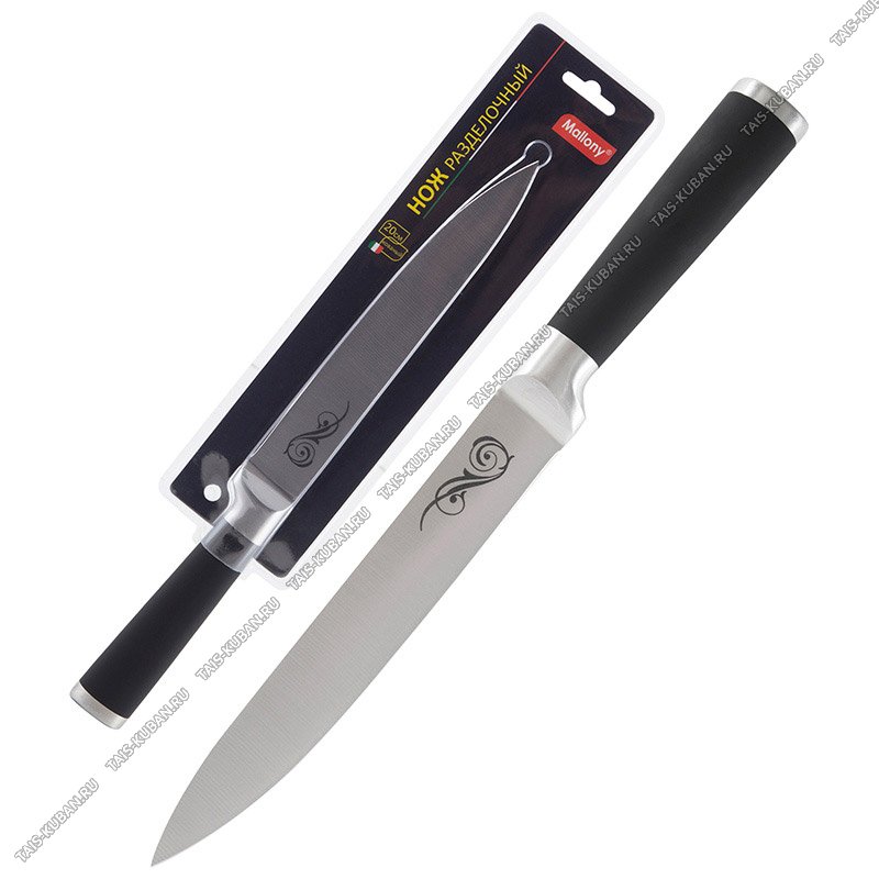 лезвие нержавеющая сталь 3CR13 толщиной 1,75мм,ручка с прорезиненным покрытием soft touch,цвет черный,блистер,Mallony