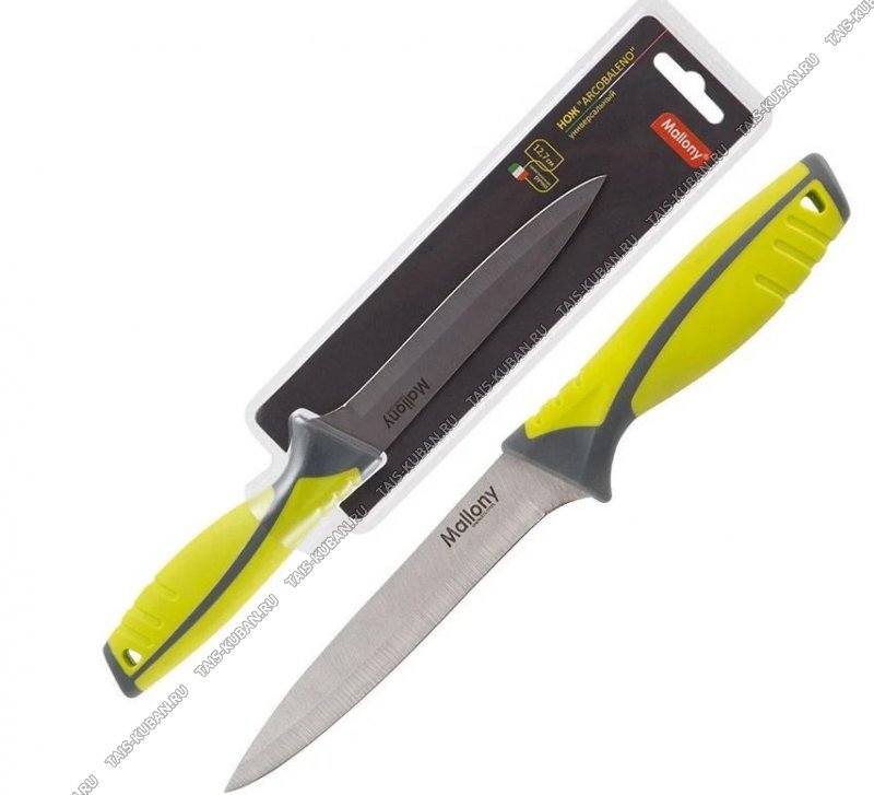Нож Arcobaleno универсал 12см,лезв нерж сталь (2CR14),прорезин.ручк,желт/сер,блистер (24) Нож Arcobaleno универсал 12см,лезв нерж сталь (2CR14),прорезин.ручк,желт/сер,блистер (24)