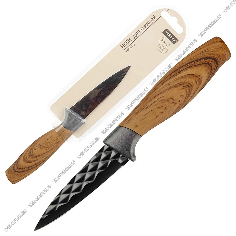 фактурное лезвие нержавеющая сталь 2CR14 толщиной 1,2мм с покрытием "non-stick",цвет чёрный,пластиковая ручка с покрытием soft-touch "дерево",блистер,Mallony