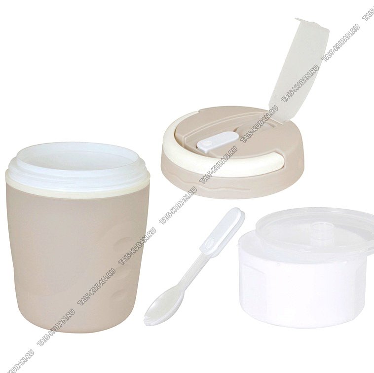 Ланч-бокс 1,0л (пластик) широк.горло d11см,2 отдел+ложка,ручк,бежев