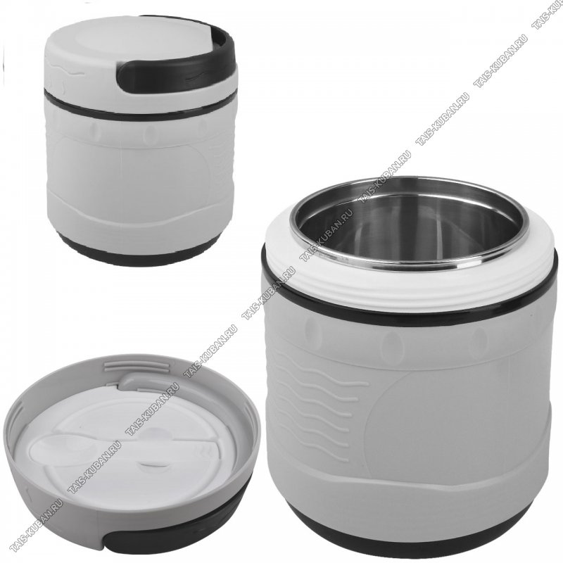 Термос (суповой) 1,0л ложка,широк.горло,пласт.корп. серый,ручк