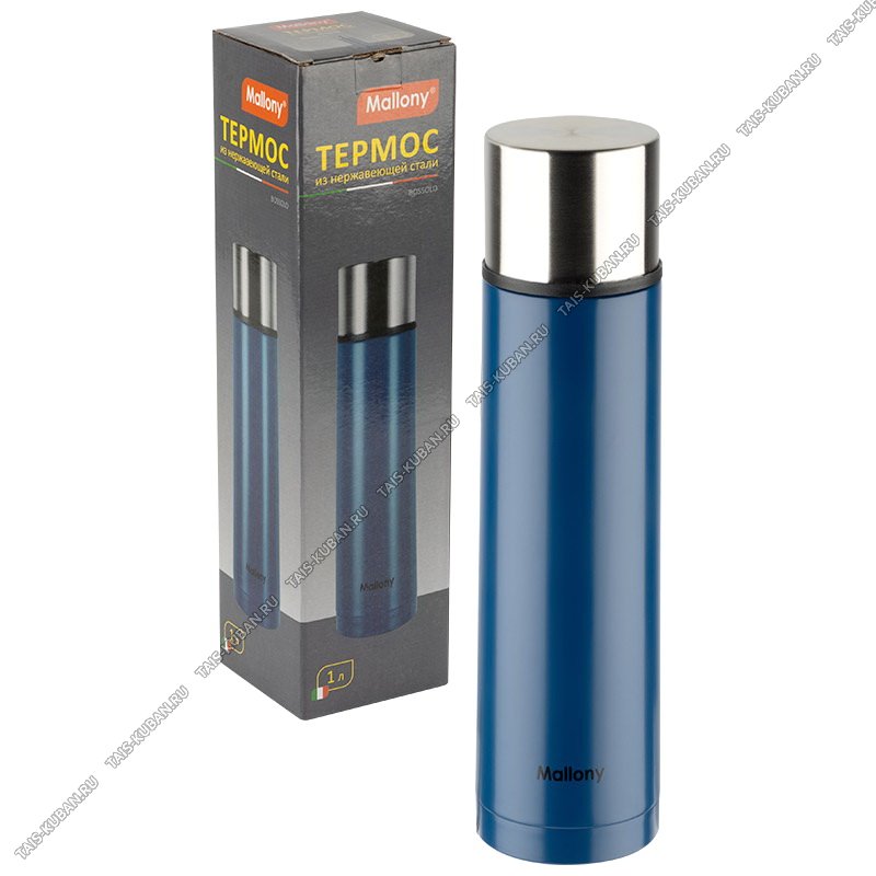 крышка-чашка,пробка-кнопка,матовый корпус,цвет синий,подарочная упаковка,Mallony