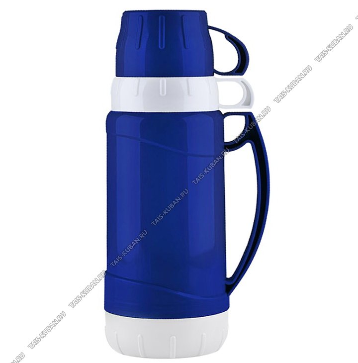Термос "Valente" 1,8л крышка-чашка 2шт,синий/бел,руч,п/у (12)